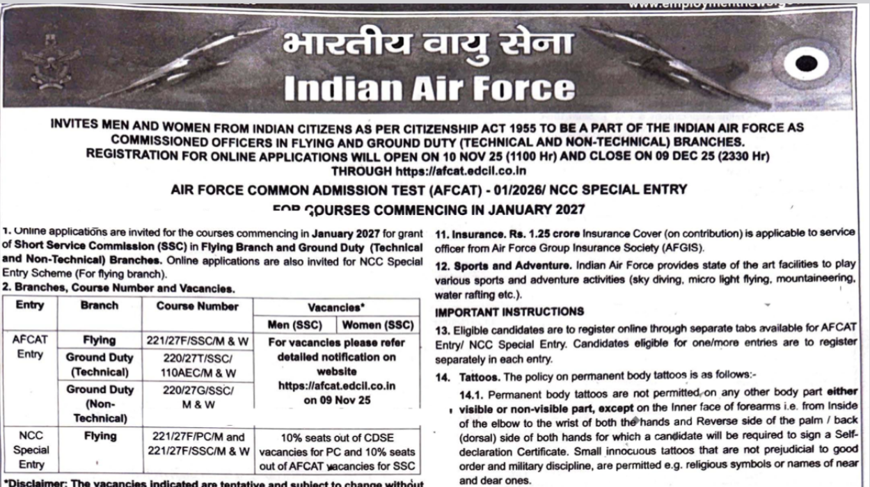AFCAT 01/2026 Recruitment Online Form 2025: Eligibility Criteria